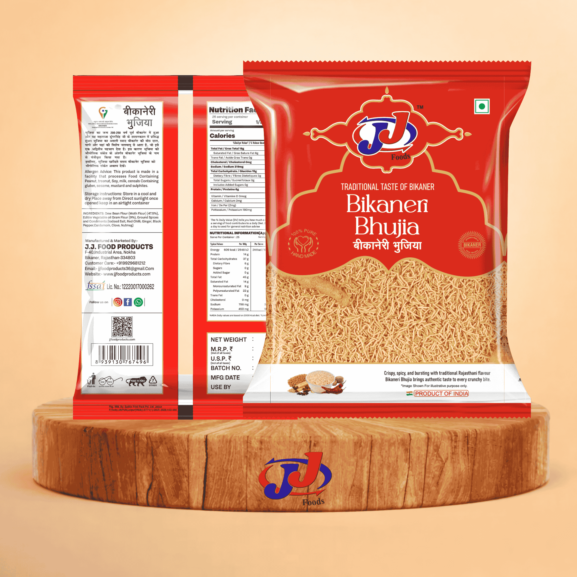 At JJ Food, our mission is to deliver traditional snacks with consistent quality and authentic flavor. Each pack of Bikaneri Bhujia reflects our commitment to providing customers with delicious, fresh, and hygienically prepared products.