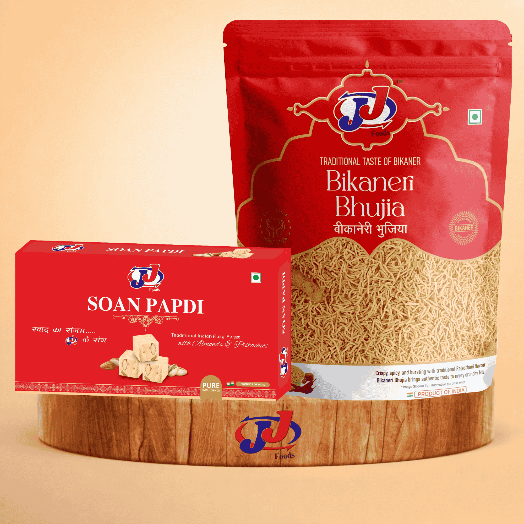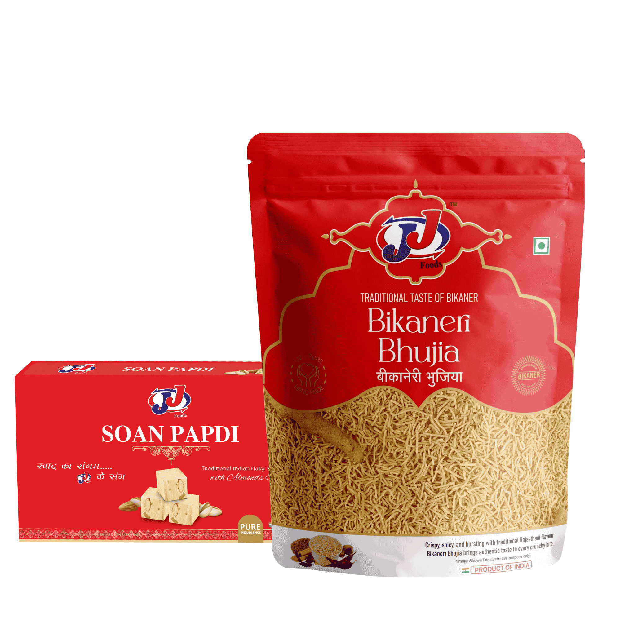 JJ Food Bikaneri Bhujia & Soan Papdi Combo – Perfect Sweet & Snack Pair