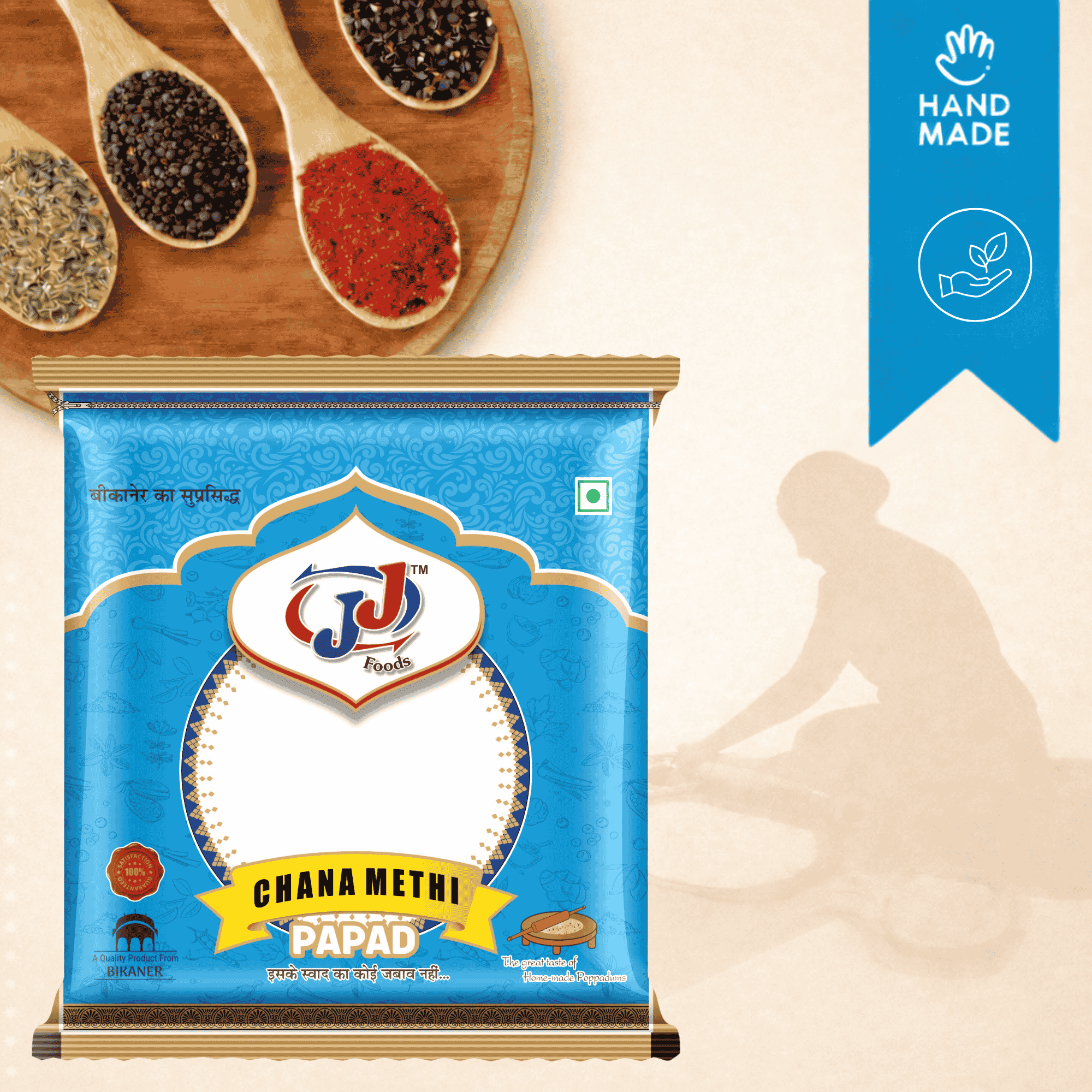 JJ Food Chana Methi Papad – Pure Handmade Traditional Delight