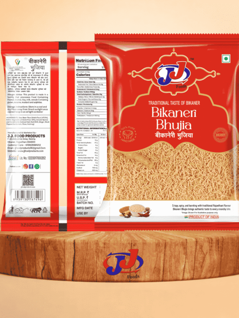 Crispy and flavorful snack made from gram flour and infused with garlic, offering a savory and aromatic taste. Prepared and hygienically packed by JJ Foods to ensure freshness, quality, and an enjoyable snacking experience.